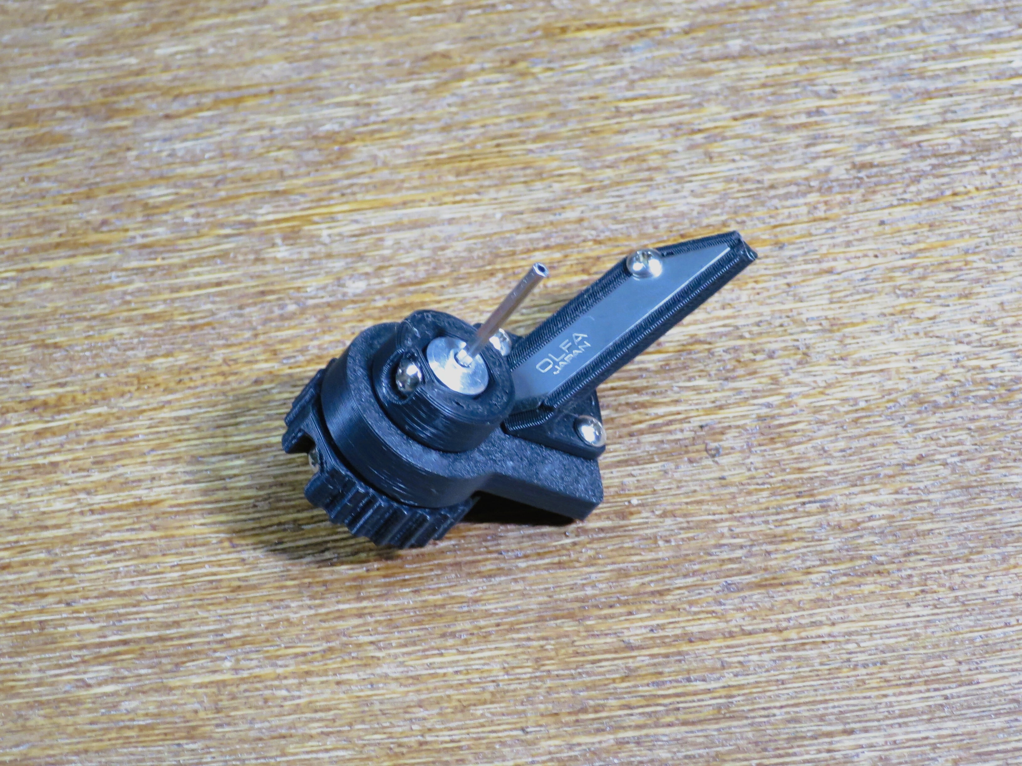 クラウンギヤ(オレンジ,G20)の歯先を加工するツールです.調整次第で好みの仕上がりに加工できます